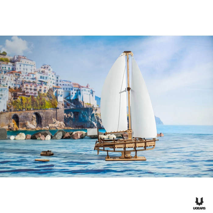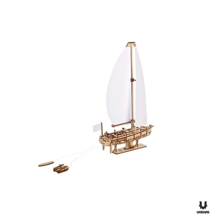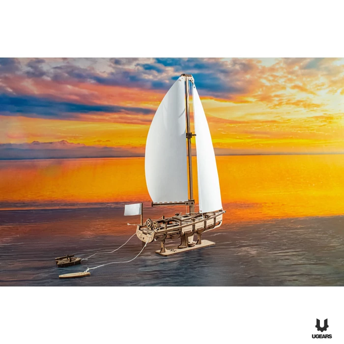 Horgonyt fel és induljon a tengeri utazás a UGEARS dekoratív vitorlás modelljével! Ez a gyönyörű, fa alkatrészekből álló hajó némileg eltér az átlagos UGEARS szettektől, abban a tekintetben, hogy nem rendelkezik fogaskerekekkel, rugós vagy gumiszalagos meghajtással, inkább otthoni vagy irodai dekorációs elemnek alkalmas.Ettől függetlenül azonban maga a konstrukció gyönyörű képet fest a szemlélő elé.