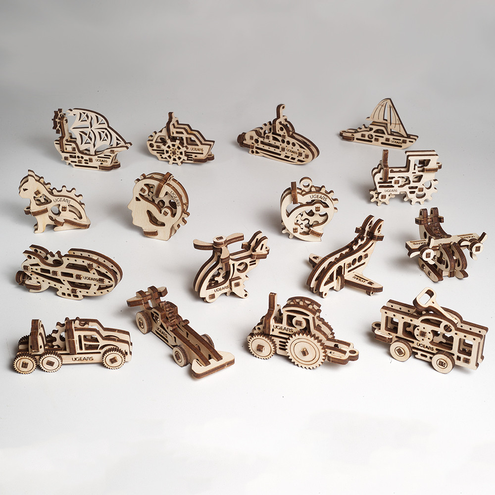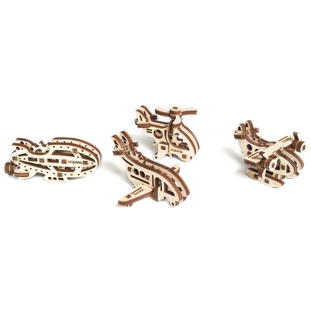 A Ugears repülők mini szettben 4 önálló miniatűr mechanikus modell várja, hogy összerakd. Gyermekek és felnőttek számára egyaránt ideális választás. A készletben egy helikoptert, hidroplánt, léghajót és egy repülőgépet találsz a legalapvetőbb mechanikai elemeivel.